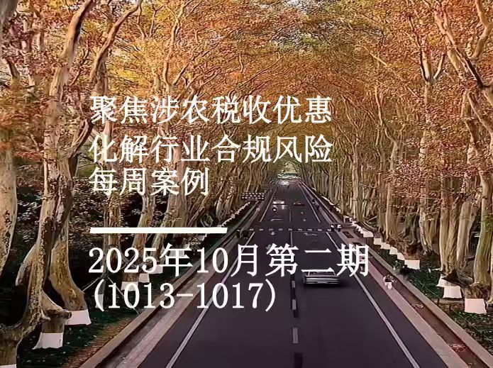 每周税案速递:10月第2期《聚焦涉农税收优惠 化解行业合规风险》