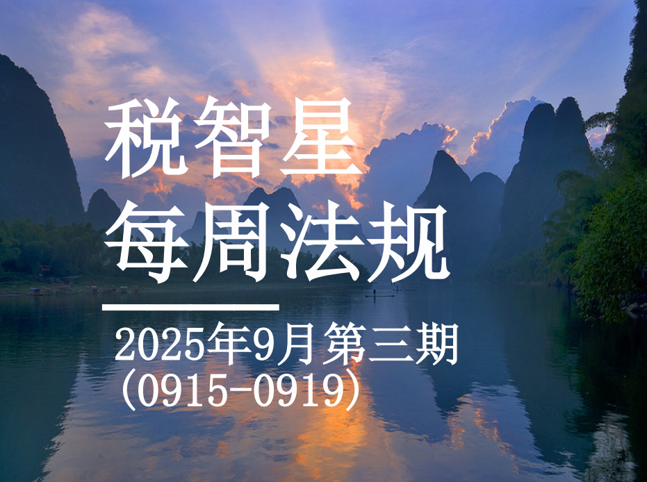 每周税事要知道:财税法规速览 2025年9月第二期